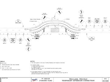 Applies to Two-Lane, Two-Way Temporary Diversion Connections (608). Also Multilane Roadways with Temporary Diversions (620) - requires Crash Cushions.