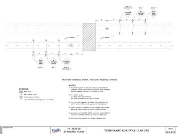 Applies to Two-Lane, Lane closures (606) with temporary traffic signal with pre-approval from District Traffic Operations Engineer. Also applies to Multiline Roadway Lane Closures (613) and involves Arrow board.