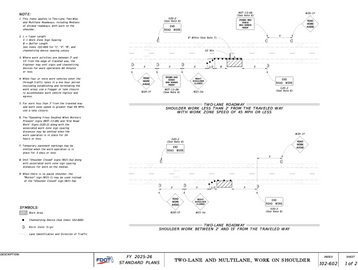 Applies to Two-Lane, Two-Way and Multilane Roadways including Medians and divided roadways with work on shoulder. Signage should be mirrored when work zones on multi-lane, median roadways.