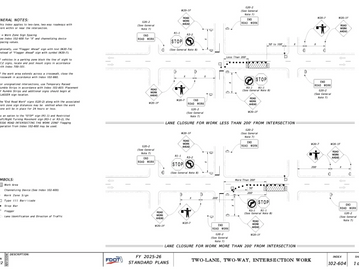 Applies to Two-Lane, Two-Way Roadways with work within or near the intersection. May need temporary signal phasing modifications with District Traffic Operations Engineer pre-approval. RUMBLE STRIPS MAY BE NEEDED FOR UNSIGNALIZED INTERSECTIONS.