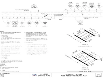 Applies to Two-Lane, Two-Way Roadways with work within the traveled way. TEMPORARY RUMBLE STRIPS TO BE USED WHEN EXISTING POSTED SPPED IS 55 MPH OR GREATER.
